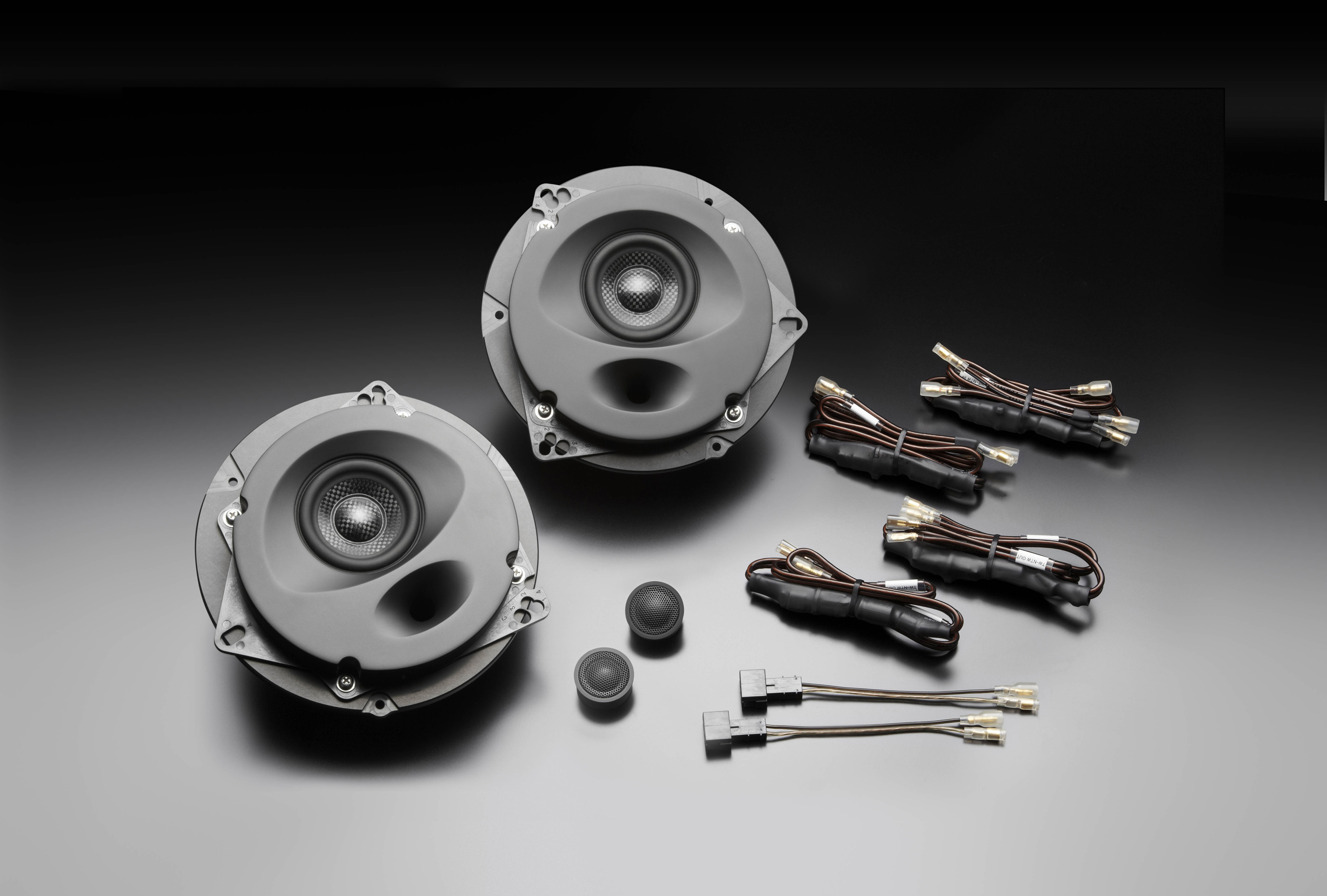 各車種の車室内音響特性に合わせて高音質パーツを厳選し、定数や部品選定などについて入念なチューニングを実施したハイパス(トゥイーター)、ローパス(ウーファー)独立式のハイグレードネットワークを付属。このネットワーク回路は一般的なケース類に納めず、小型化された基板を制振効果の高い樹脂チューブで固めたコンパクトな形状とすることで、振動による音質劣化も防いでいます。