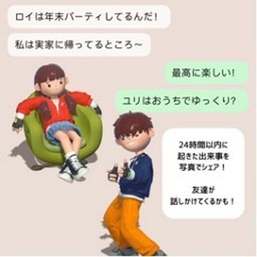 例えば、ダイエット中の食事や運動、勉強や部活動の様子、友だちとのお出かけを記録したり、ペットと遊ぶ日常の瞬間、プレゼントをもらった幸せな瞬間など、心動かされた瞬間をシェアしたり、遊び方は自由自在です。