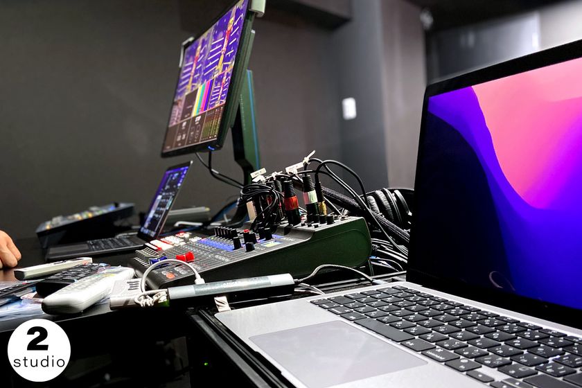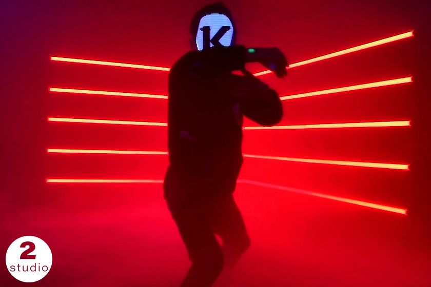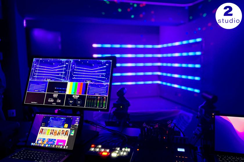 2スタは背景に20本ものLEDバーライトを設置。発光パターンを専用コントローラーで簡単操作。更にレーザー照明等も完備。また常設カメラで簡単にAR加工ができるシステムを搭載、インパクトの高いプレゼン配信、収録やスチール撮影までお客様の使い方次第で様々な演出が可能です。