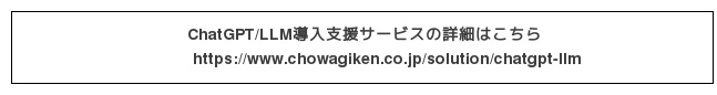 ビジネスで本当に”使える”ChatGPT/LLM導入を実現ChatGPTをはじめとする大規模言語モデル(LLM)の企業利用が増加する一方、安全性等の懸念から導入に踏み切れない、一部の業務にしか使えない、といった声も多く聞かれます。本サービスは、企業が安心して利用できる高い安全性を担保しつつ、社内の機密情報の活用、普段使用する業務ツールとの連携、より高度な業務自動化への適用など、企業の業務に実際に”使える”ChatGPT/LLMの導入・活用を支援します。