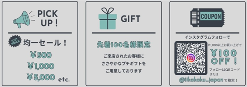 国内外でリユース事業を展開するMF Global 株式会社(本社:東京都港区南麻布、代表取締役:萬田 凛桜)は、訳アリ商品などのセレクト商品を販売するオンラインショップ『iiKaKaKu』初の実店舗『iiKaKaKu AZABU』を2024年7月29日に港区東麻布1丁目にオープン。この度、8月31日まで「グランドオープニングセール」を実施しております。