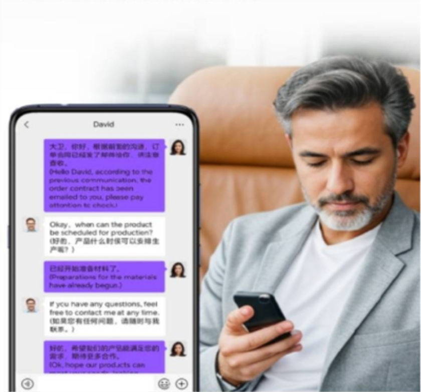 ・ワンクリックで相手から送信されたテキストと音声を翻訳する。