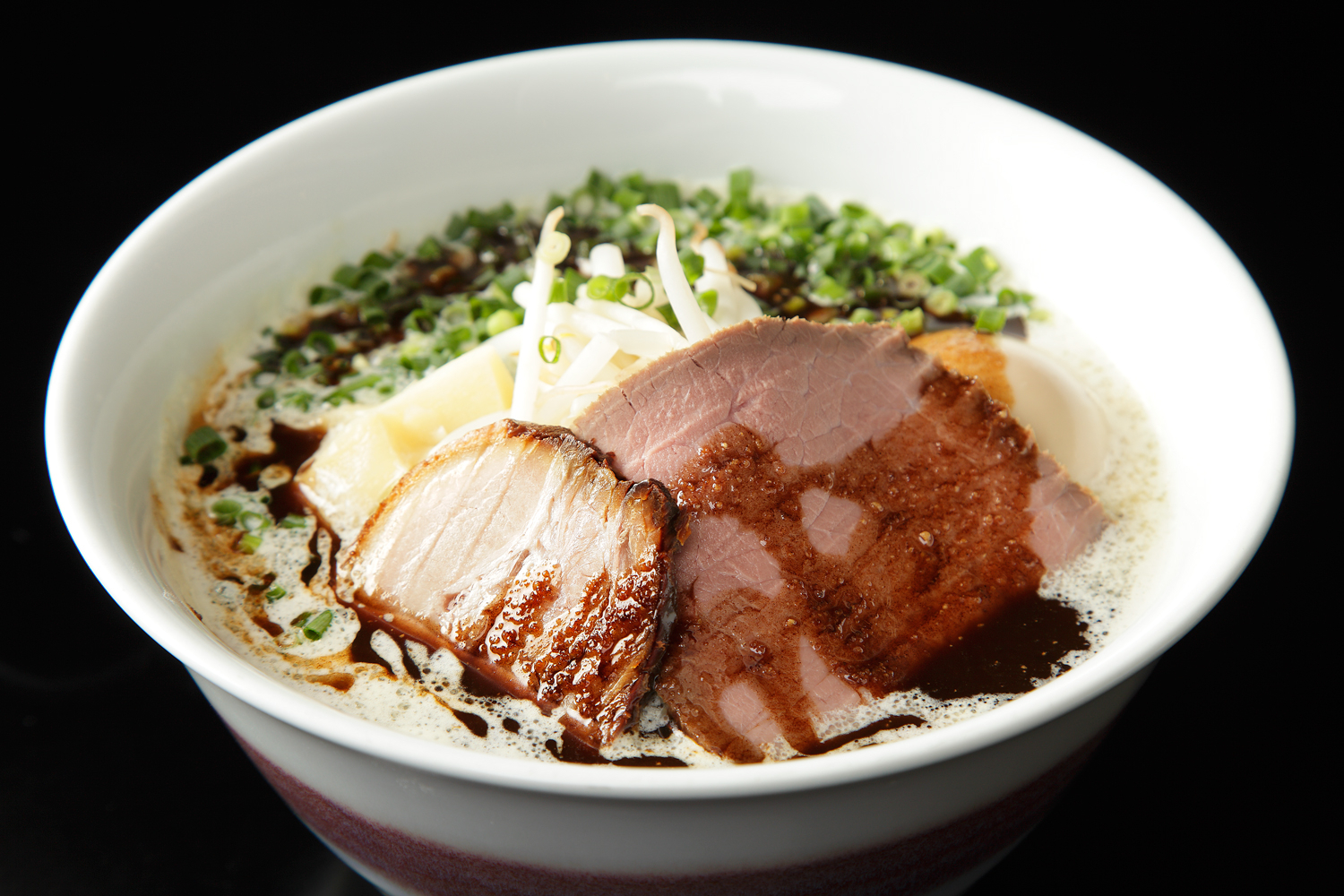 プレミアム豆乳と牛骨スープを合わせることで生み出された、まるで豚骨スープの様なクリーミーなスープ。マー油を加えて、熊本ラーメン風の仕上がりに。