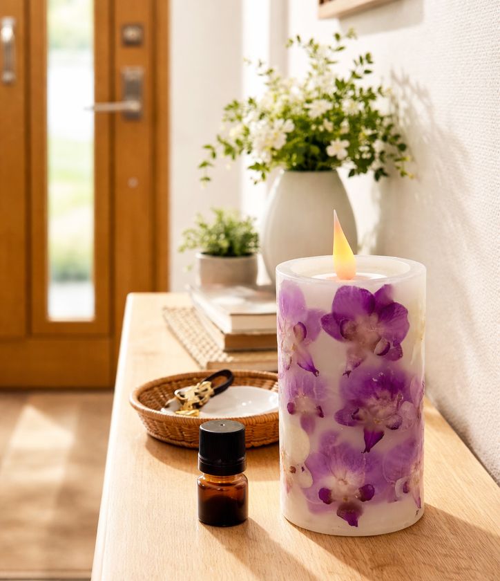 胡蝶蘭LEDアロマキャンドル最大の特長は、安全性と香りの鮮度を両立している点です。