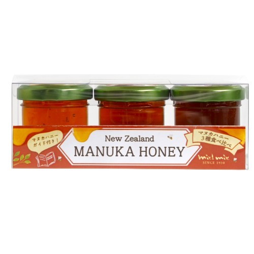 数字によって違いがあるマヌカハニー。「何を基準に選べばいいの?」という声にお応えし、数値の異なる3種を一度に試せるミニサイズの食べ比べセットをご用意しました。