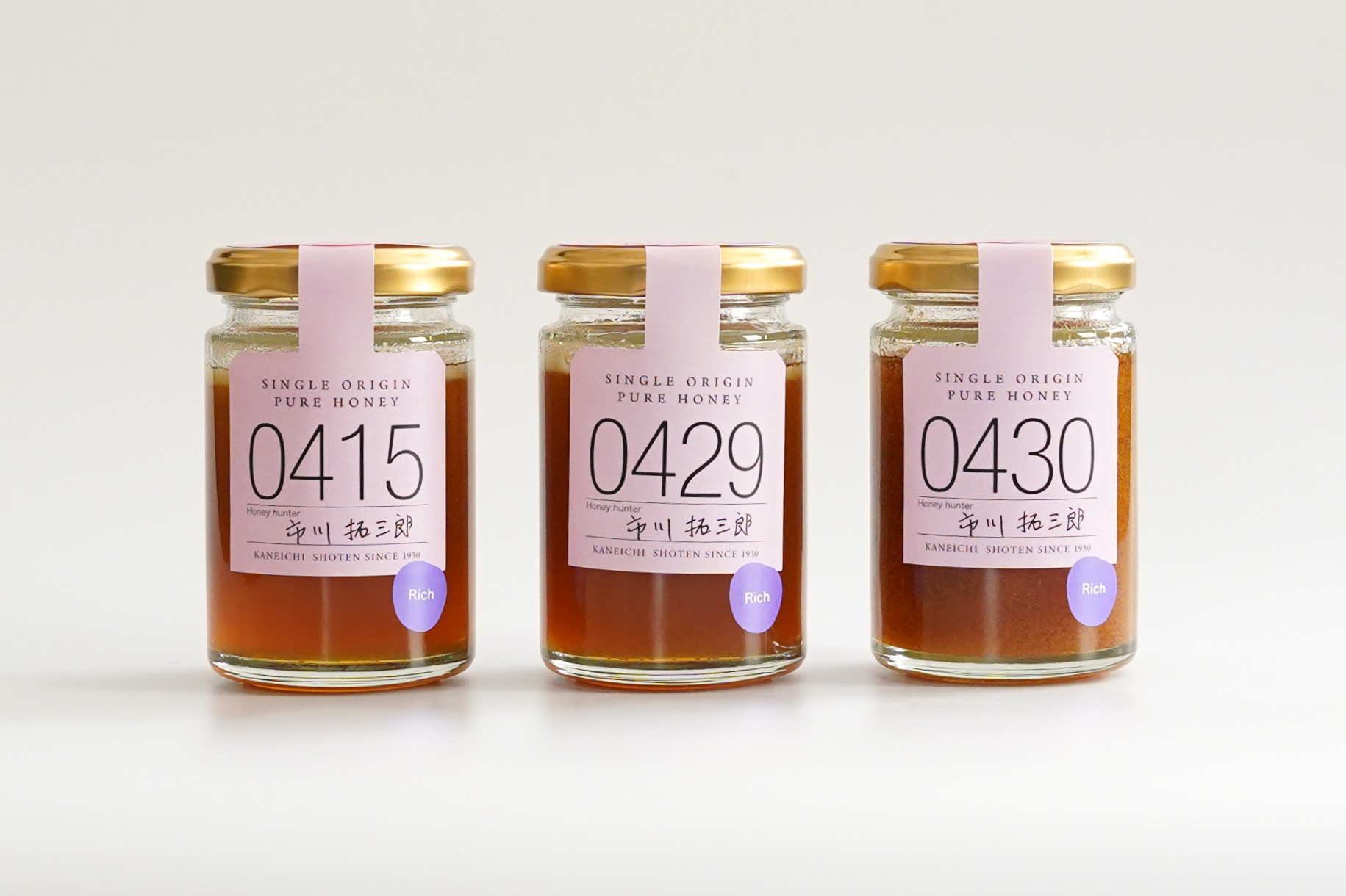 蜂蜜は「蜜源、場所、時期」などによって味わいがそれぞれ異なります。その異なる"オリジン"を持つ蜂蜜を、個性そのままに瓶詰したのが「シングルオリジンハニー」。ハニーハンター市川拓三郎が世界中からいろいろな蜂蜜を集め、世界20か国、日本20都道府県以上から100種類を超える蜂蜜を取り揃えています。