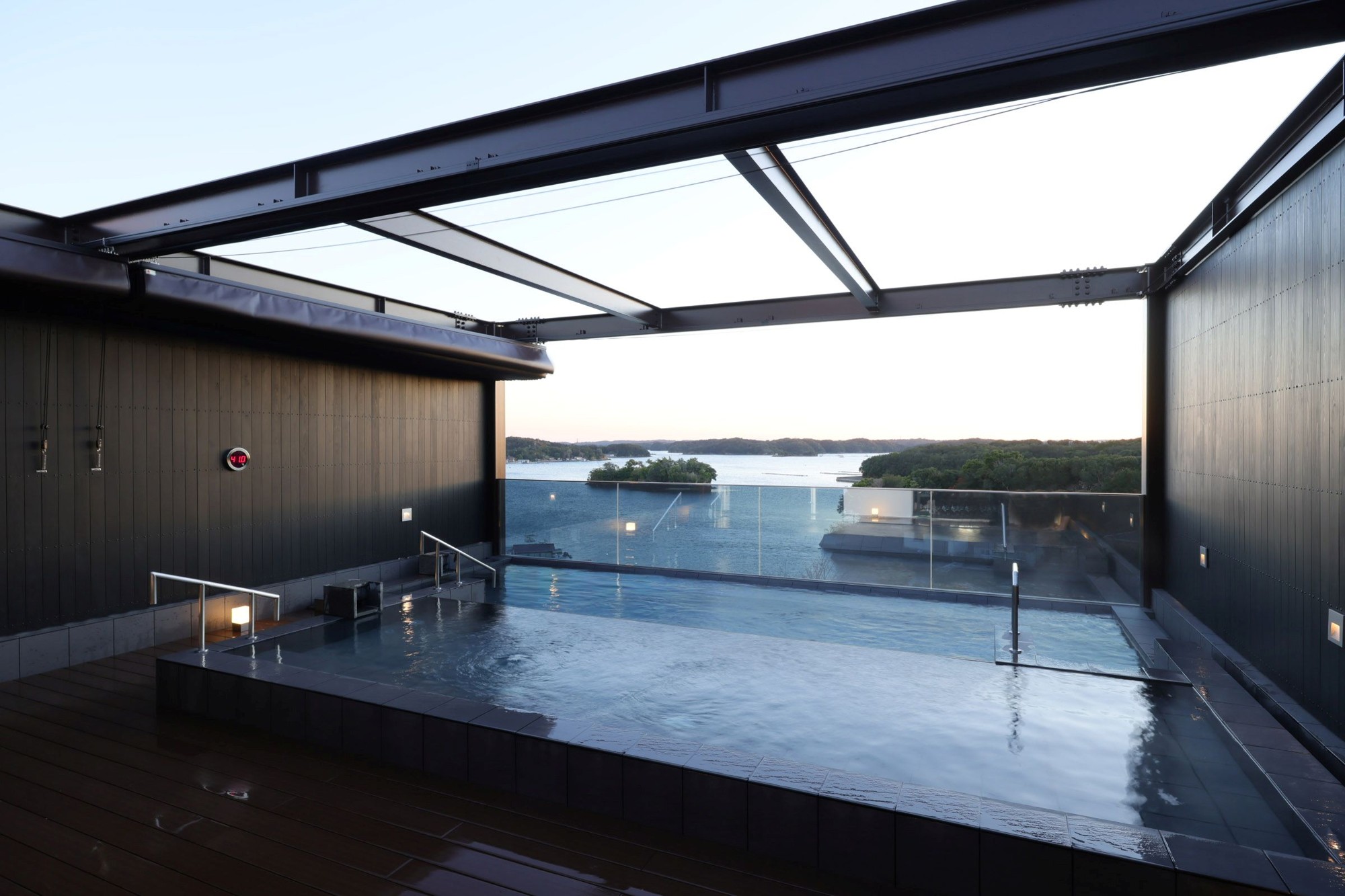 本館3階フロアに露天風呂を新設いたしました。四季折々の英虞湾の景色をご覧いただきながら入浴が楽しめます。特に夕暮れ時は「日本の夕陽百選」に選ばれた素晴らしい夕景が望める時も。既存の大浴場と露天風呂には水風呂を新たに設置。館内湯めぐりもお楽しみください。