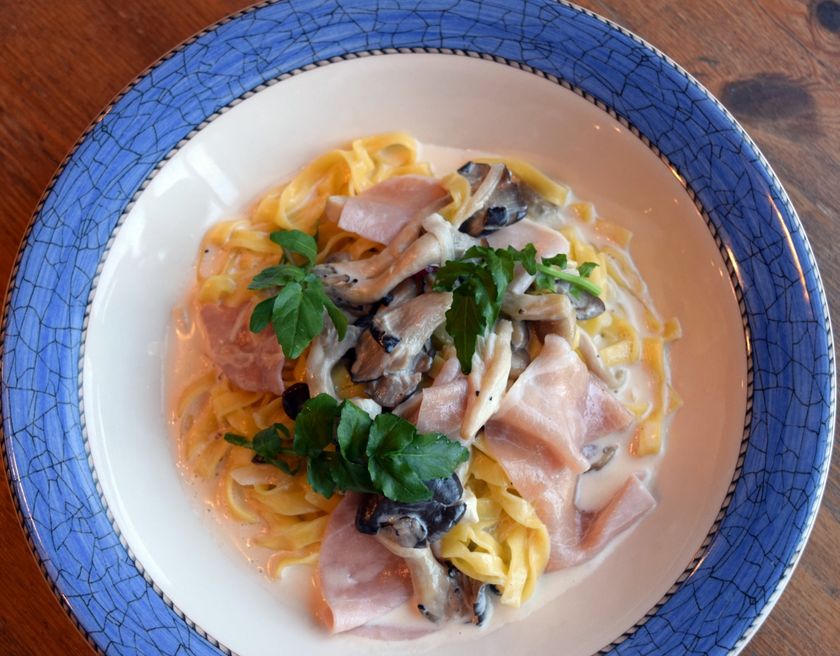元郵便局を改装した「木旺舎 Vert Fonce」は、森の中にあるログハウス風のレストラン。「生ホタテとウニのクリームパスタ」はウニの甘みが溶け込んだ濃厚なクリームソースと、磯の香る海苔とのハーモニーがたまらない一品です。種類豊富な自家製のケーキも人気のポイントで、こだわりのコーヒーとともにゆったりとした時間を過ごせます。