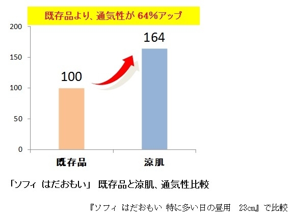 <「ソフィ はだおもい」既存品と涼肌 通気性比較>
