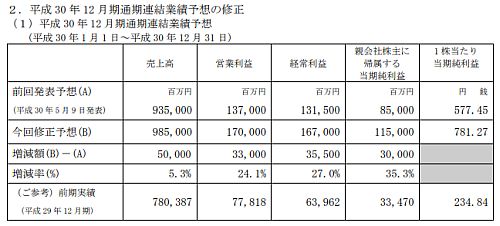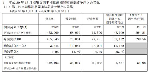 TOKYO, Aug 8, 2018 - (JCN Newswire) - 平成30年5月9日に公表しました平成30年12月期第2四半期累計期間の連結業績予想と本日公表の実績値に差異が生じましたので、下記のとおりお知らせいたします。また、当社は、最近の業績動向を踏まえ平成30年12月期通期連結業績予想を修正いたします。
