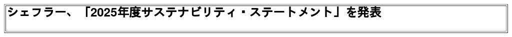 シェフラー、「2025年度サステナビリティ・ステートメント」を発表