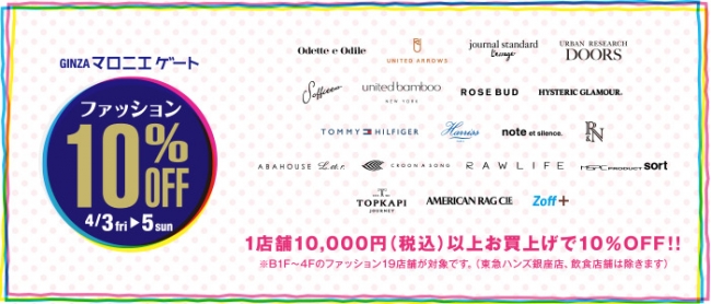 マロニエゲート(中央区銀座2-2-14) のファッション店舗では、4月3日(金)〜5日(日)の3日間