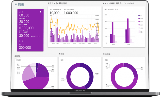 リアルタイムでユーザー分析とチケット在庫数及び抽選・チェックイン(着券)状況までのデータを一元化し、ブラウザベースで確認・管理が可能です。