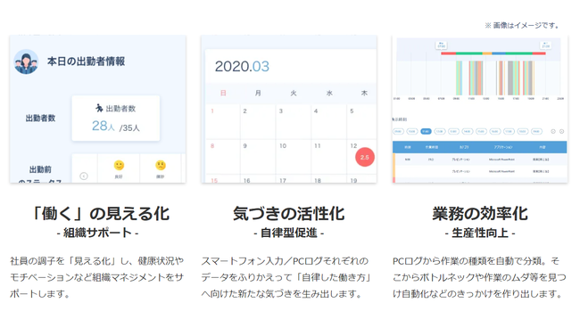 【セキュリティ上の安全性について】今回の実証実験では、訪問ホームページや使用ファイル名など、業務内容を推測できる可能性があるログを全て削除した、アプリの利用傾向やPC作業時間などのデータのみ使用します。