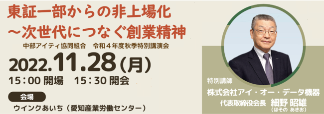 中部アイティ協同組合 「秋季特別講演会」を11月28日に開催