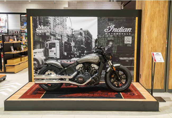 愛知県のビックディーラーであるモトスクエアが、インディアンモーターサイクルズ、ドゥカティ、トライアンフ モーターサイクル、MVアグスタの4ブランドを定期的に入れ替えながら展示します。跨っての写真撮影が可能です。