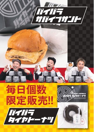 発酵食材をふんだんに使った体に優しいサバそぼろを豊川に因んだ油揚げで包みこんだ新感覚のサンドです。生地を蒸気で焼き上げることでかつてない“しっとりもちもち”な食感を実現した「STEAM BREAD」のバンズも新感覚!バイパラらしいアートなパッケージもインスタ映え抜群です。【バイパラタイヤドーナツ】