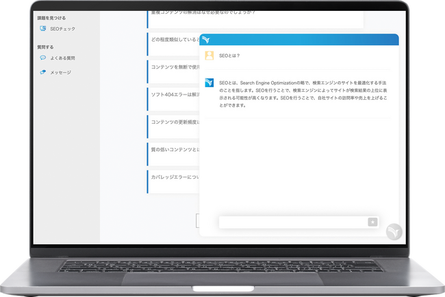 AIアシスタント機能では、最新のSEO情報や、SEOを実施していた過去の対策事例を学習したAIがSEOに関する質問について答えてくれます。