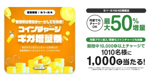 〜「ハズレなしで毎日引ける!毎日100人当たる全巻無料くじ」など過去最大の10大キャンペーンを開催〜