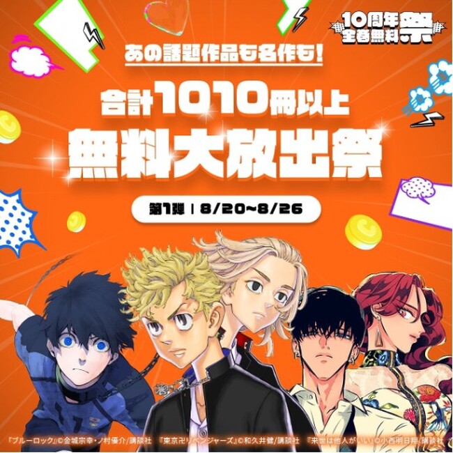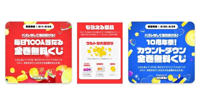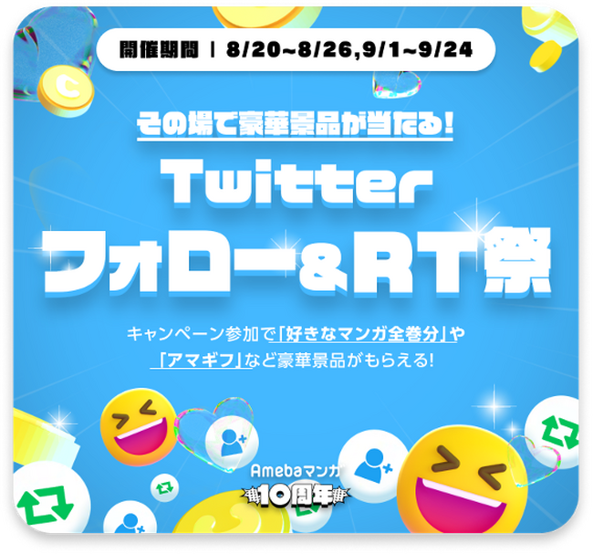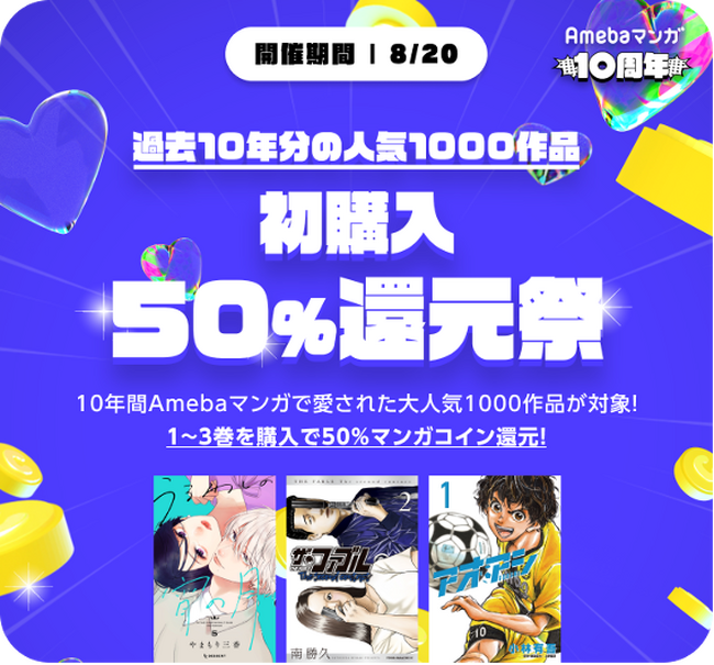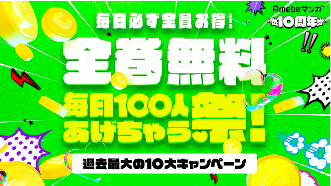 電子書籍配信サイト「Amebaマンガ」が10周年!ご愛顧いただいた読者様へ大きな感謝を込めて、約1ヶ月間にわたる「10周年記念 毎日100人全巻無料あげちゃう祭」を開幕