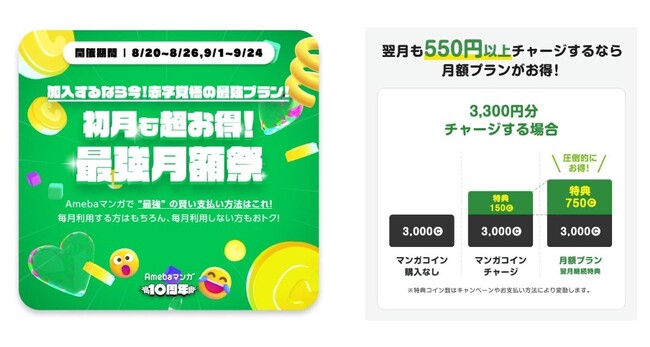 Amebaマンガで一番お得な買い方である「月額プラン」がパワーアップして登場。毎月マンガを買う方は月額プランが最も賢くお得な購入方法です。