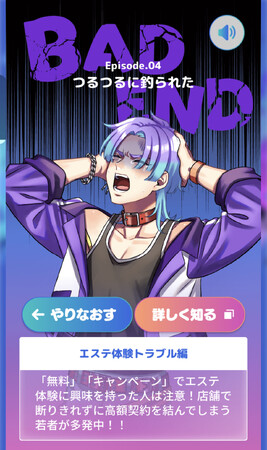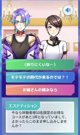 前作、消費者トラブル回避シミュレーションゲーム「18歳になったら成人してた件」にも登場した丸地(まるち)先輩やエステティシャンに加え、《マッチングアプリの落とし穴編》で瑠奈とマッチングしたイケメン・池輝(いけてる)や《あの人監修のサプリ編》に登場する広告塔として使われるモデル・流行田(はやた)など、個性的な新キャラが追加!前作同様に梶裕貴さん・優木かなさんが全てのキャラの声を担当します。