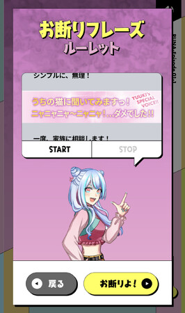 2024年3月末までの期間限定で『お断りフレーズルーレット』から楽しむことができます。