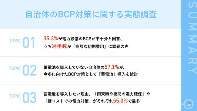 自治体の35.3%が電力設備のBCP対策が不十分と回答