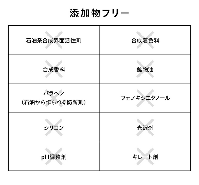 石油系合成界面活性剤や合成香料、着色料不使用でノンシリコンです。シャンプーそのものの中身にこだわって作ったからこそ自信を持っておすすめできる商品に仕上がりました。