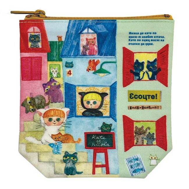 内容:Ecoute!の街に暮らすネコたちが描かれたポーチに、4種類の新デザインが登場。表面にはラミネート加工を施しているので、汚れや水濡れにも安心してお使いいただけます。