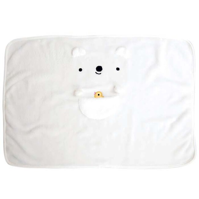 内容:小さなお子さまの身体を優しくおおってくれるブランケット。上部に4つのボタンが付いているので、抱っこ紐やベビーカーのケープはもちろん、授乳ケープとしてもご利用いただけます。また、ブランケットの表面には、クマさんのお顔に加えて、赤ちゃんが握って喜ぶクマさんの手や、のぞいて遊べるポケットも付いています。