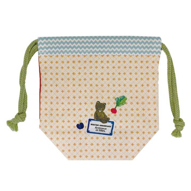 内容:「marini*monteany」から、おとぎ話に出てきそうなノスタルジックな女の子と動物たち描かれた巾着が3種類登場。表裏で異なるデザインとなっているので、飽きることなくお使いいただけます。また、マチ付き巾着なので収納力も抜群。そのままでも、バックインバックとしてもご利用いただけます。