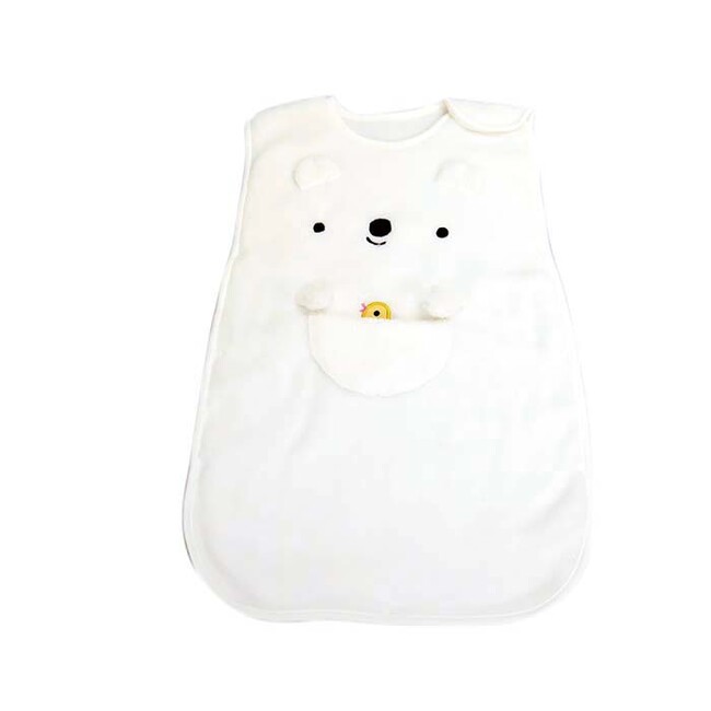 内容:クマさんの顔と手、そしてポケットからのぞくヒヨコがかわいいスリーパー。肩や脇、股下にスナップボタンが付いているので、寝相の激しいお子さまでも安心してご使用いただけます。優しいクリームカラーは、性別問わずご利用いただけますので、ギフトにも喜ばれます。