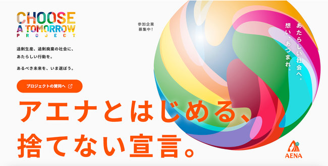 Choose a Tomorrow Projectでは、アエナとともに「捨てない宣言」をし、廃棄削減に取り組む企業を募集しています。