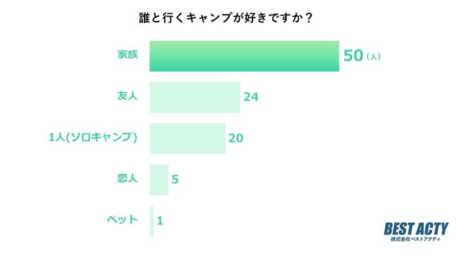 アウトドアメディア「TACKLE NOTE(https://tacklenote.com/columns/)」を運営する株式会社ベストアクティ(https://tacklenote.com)は、10代から60代までの100名に【誰と行くキャンプが好きか】についてのアンケートを行いました。