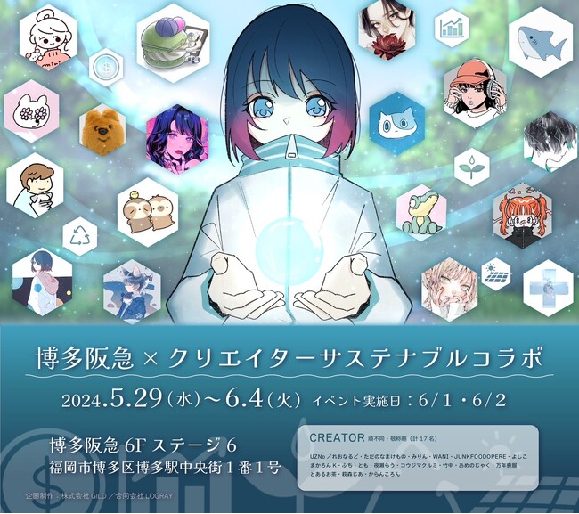 博多阪急・GILD・LOGRAYはサステナブルの理解を深めてもらう為の「博多阪急×クリエイターサステナブルコラボ」を総勢17名のクリエイターと共に博多阪急で開催致します。他、複数企画開催します。