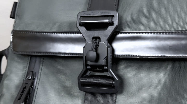 トップリッドのバックルにはドイツFidlock社のマグネットバックルを採用。ノータッチでも磁力でピタッと結束し、自動でロックが掛かるので使用中にバックルが外れる心配がありません。