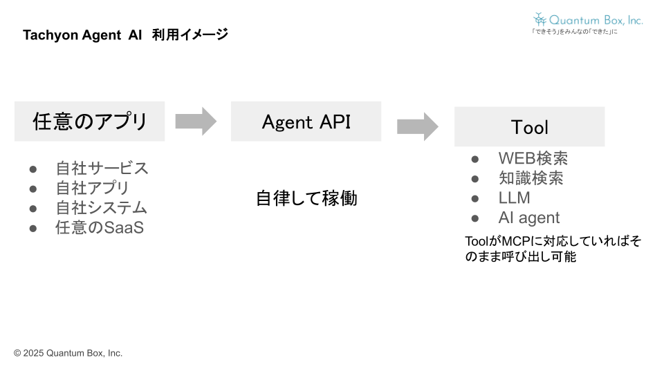 Quantum Box株式会社、MCP準拠の自律型AIエージェント開発基盤「Tachyon Agent API」を提供開始