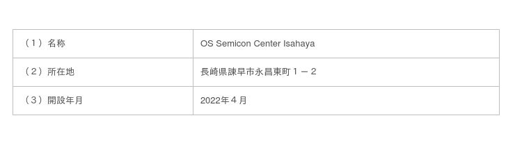 当社は、2022年4月21日に長崎県諫早市に半導体技術者研修センターOS Semicon Center Isahaya(以下、OSCI)を開設しましたので、下記のとおりお知らせいたします。また、本日開所式を執り行いましたので、併せてお知らせいたします。