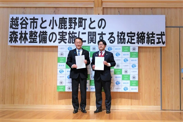 越谷市(市長 福田 晃)と小鹿野町(町長 森 真太郎)は、小鹿野町が所有する森林の一部を「こしがや・おがの交流の森」として位置づけ、森林整備に取り組むため、令和5年(2023年)5月1日に協定を締結いたしましたので、下記のとおりお知らせいたします。