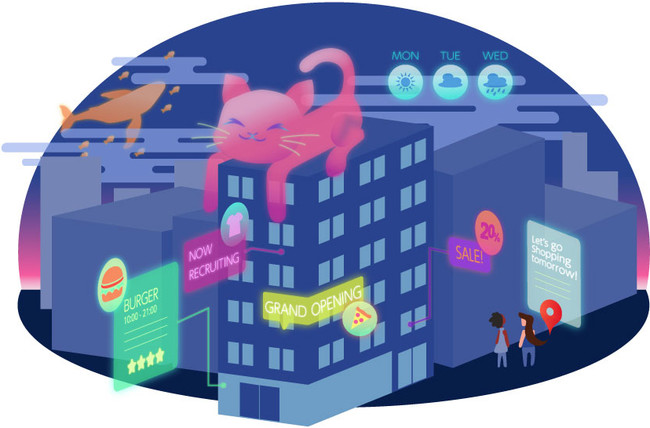 同じ場所・空間であっても、見る人・場所・時刻によって個々に最適化された情報が出現することで、1つのヒト・モノ・コトがもたらす価値を無限に広げます。