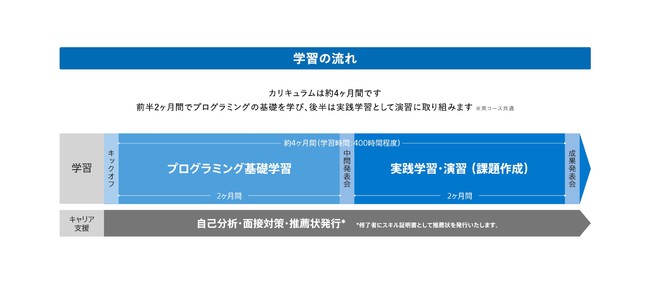 本講座では、4ヶ月でITエンジニアとして活躍するために必要なスキルの習得を目指します。
