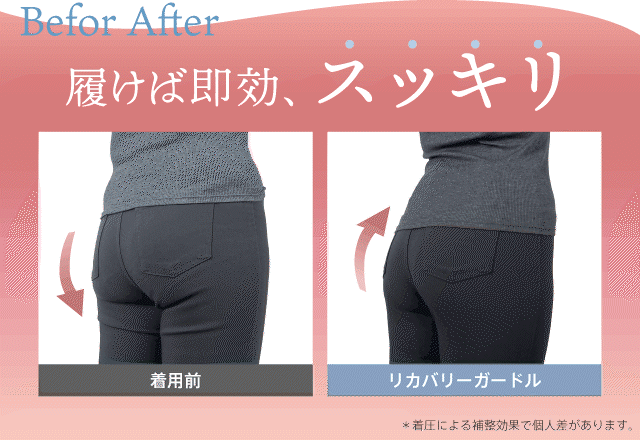 healogyリカバリ―ガードルは、着圧により骨盤姿勢を改善することで、下腹・ウエスト・ヒップのラインを整えてくれます。