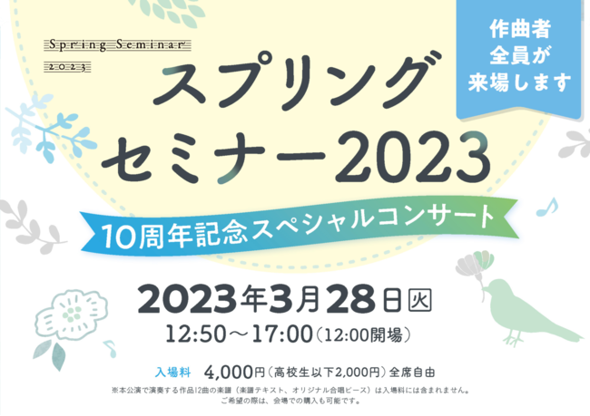 今こそみんなで合唱の楽しさを!【スプリングセミナー2023 10周年記念スペシャルコンサート】2023年3月28日(火)に開催決定!