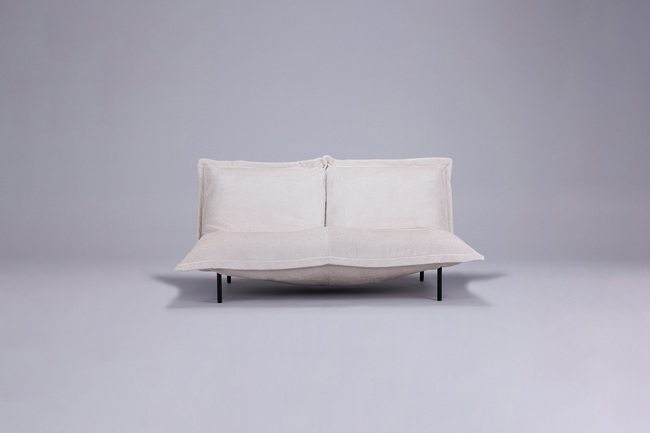 大きくふかふかした羽枕を背と座に組み合わせるというコンセプトで開発が進みました。そして、その大きなボディをしっかり支えるような太い脚ではなく、敢えて細い脚を取り付け、全体的に軽快でシンプルに魅せるようなデザインに仕上げました。