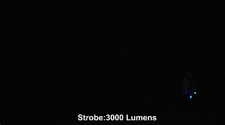 ストロボライトは3000lmの光で点灯を繰り返し、周囲にあなたの危険を知らせるのにも役立ちます。