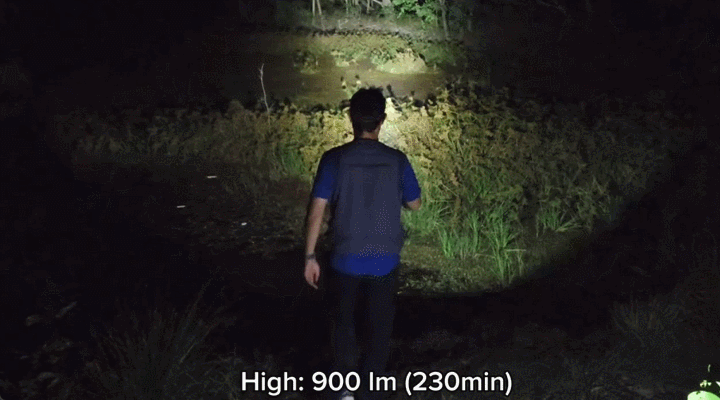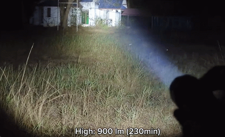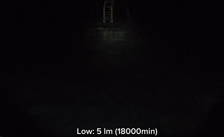 最大照射距離458mを誇るTURBOモードは、最大1分間、高輝度で広範囲を照らすことができます。その後は加熱やバッテリーへの負担を抑えるため、自動的に600lmへ光量が調整されますが、600lmでも非常に明るく、暗闇をしっかり照らすには十分な性能です。