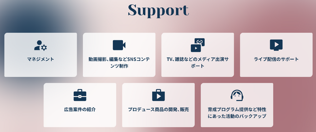 事業内容:タレントマネジメント事業、ライブコマース事業、コンテンツプロデュース事業、マーケティング・PR事業、D2Cブランド事業、Z世代マーケティング事業、メディア事業