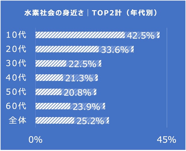 ■水素社会の認知度は全体の3割程度。10代では4割以上の認知度。