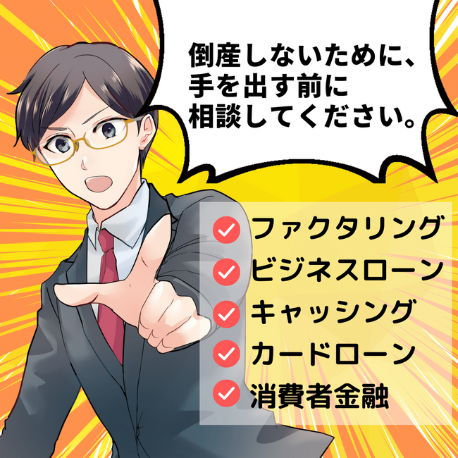 ファイナンスアイは創業以来、日本経済を支える中小企業を中心に8,000社以上の起業家・経営者・個人事業主の相談に対応してきました。また、成功報酬で対応してきたことで、ハードな案件も知恵と工夫、そして経営者との蜜な関係構築により、これを実現しました。今回のサービスでは、この知識やノウハウを活かして対応します。相談者にはメリットしかないサービスになりますので、誰よりも先にご相談いただければと思います。